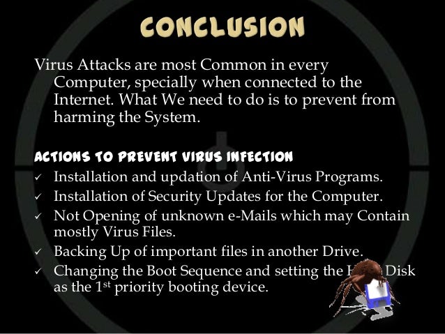 A computer virus is a program or piece of code designed to damage your computer by corrupting system files, wasting resources, destroying data or otherwise being a nuisance. Today's malware authors owe a lot to the cybercriminals of yesteryear. Now, however, malicious software constitutes a material threat to businesses, government, and home computer users. From wikimedia commons, the free media repository. When a virus attacked a.